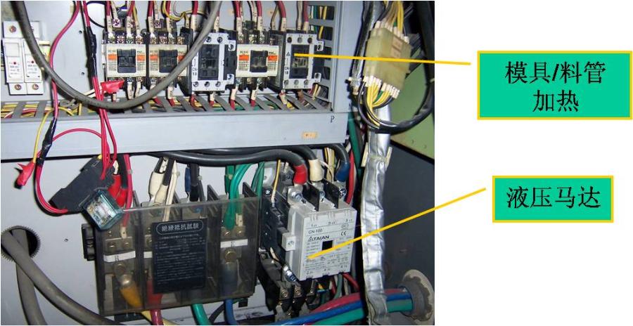 2. 接觸器的應用,主要是用于料管加熱及液壓馬達控制兩種。