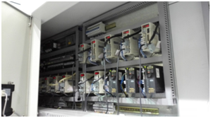 兩臺PLC主機之間通過CAN open實現數據交換,同時控制13套JSDEP系列伺服,3臺S310+變頻器,并通過10寸HMI實現人機交互。